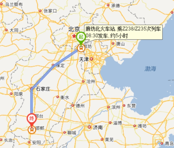 一、廊坊火車站到邯鄲火車站時刻表