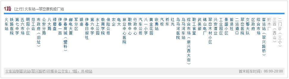伊春火車站到客運站(翠興路橋)可乘坐公交車:1路。