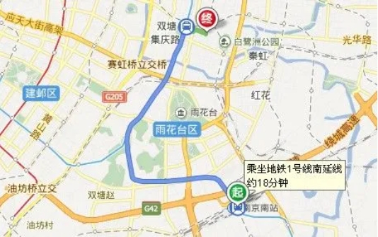經龍蟠中路、長樂路至南京夫子廟,全程約11.3公里,所需時間約19分鐘。