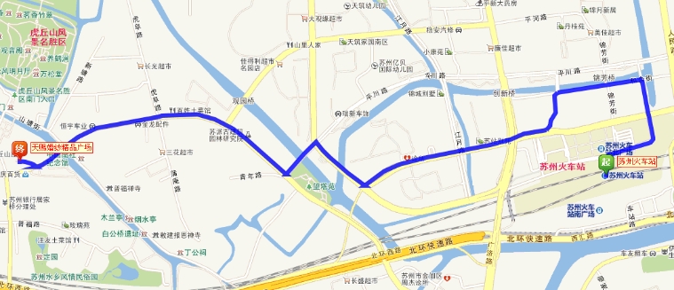 可以坐軌道交通2號線、1號線,蘇州火車站到虎丘區相距7.9公里。