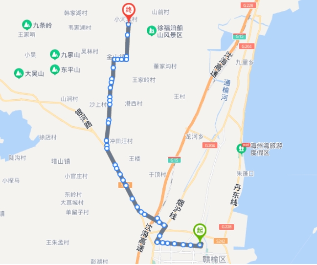 連云港火車站 - 人民路 - 新浦大道 - G204國(guó)道 - 華中路 - 鎮(zhèn)海路 - 義塘路 - 金海路 - 懷仁路 - 贛榆汽車客運(yùn)站