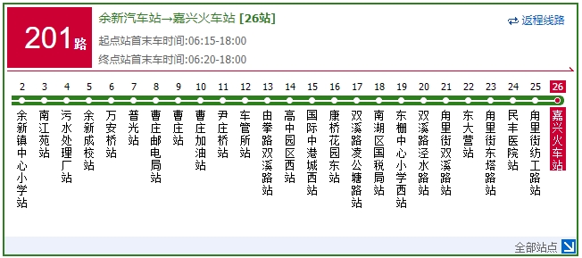 | C496 | 動車 | 慶元 | 07:55 | 嘉興 | 13:53 (當日) | 13:56 (當日) | 上海南 | 14:51 (當日) |