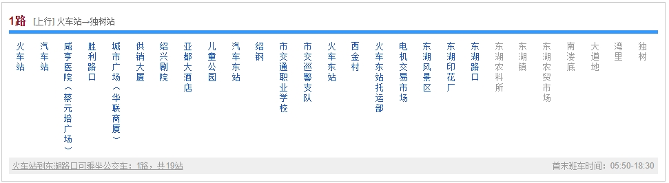 紹興火車站到東湖路口可乘坐公交車:1路。