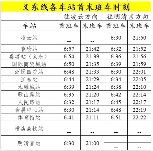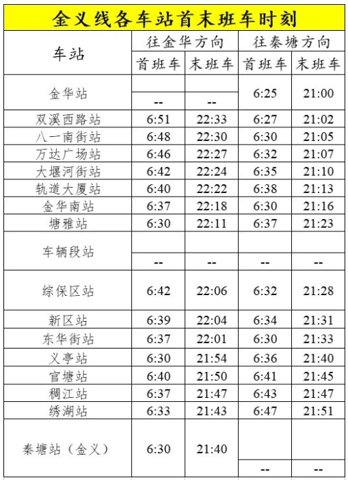 二、金華火車站到義烏輕軌時刻表