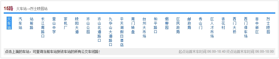 火車站 - 汽車站 - 站前路 - 長江南路口 - 里山中學 - 家機廠 - 陵陽大道 - 齊山公園 - 齊山北道路口 - 九華山大道路口 - 平天湖假日酒店 - 南門轉盤 - 臺州大市場 - 和平路口 - 煙柳園 - 區民政局 - 郵政局 - 秀山門 - 區人才市場 - 杏花村 - 西門大橋 - 西門停車場 - 杏中新區 - 烈士陵園