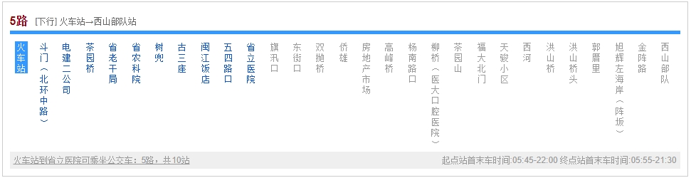 1、從福州南站出發(fā),步行120米,到福州火車南站乘地鐵1號(hào)線,途徑13站,到達(dá)東街口站下車,步行960米,到達(dá)省立醫(yī)院。