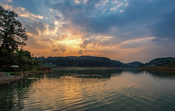 據說自古以來就有一蒼龍和八小龍盤居在九龍山下,一天九蒼龍攜八小龍飛往東海、中途回望,因見峰巒疊嶂、靈秀鐘聚,頓生戀故之情,于是折道回歸,安營扎寨,潤物造化,衍育眾生,最終化作一大八小九座山脈。