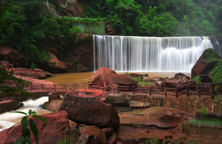 赤水丹霞山位于貴州省遵義市赤水市,是中國丹霞地貌的代表之一,這里的紅色砂礫巖地貌和綠樹成蔭的森林景觀相互映襯,形成了一幅幅美麗的畫卷。