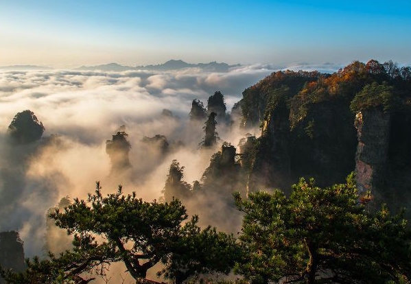 秋季是張家界的金秋時節,氣溫適宜,陽光明媚,色彩斑斕。秋季的張家界山峰、林海、云海,層林盡染,美不勝收。