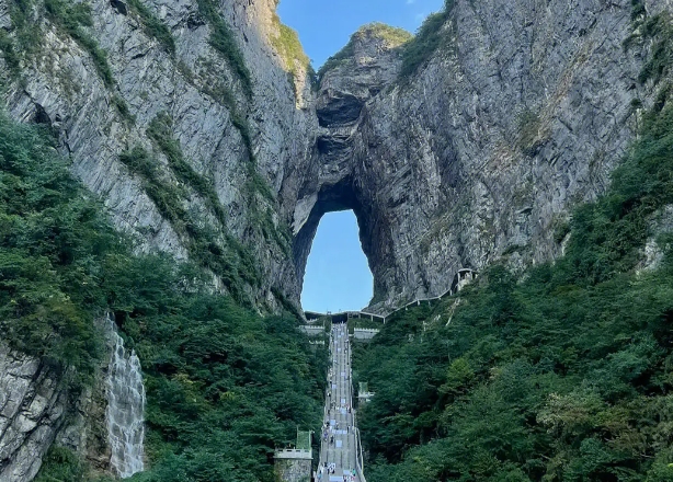 天門山國家公園位于張家界市區以南,是張家界海拔最高的景區。這里有世界最長的纜車、亞洲最長的天門洞、99道拐公路等景觀,令人嘆為觀止。