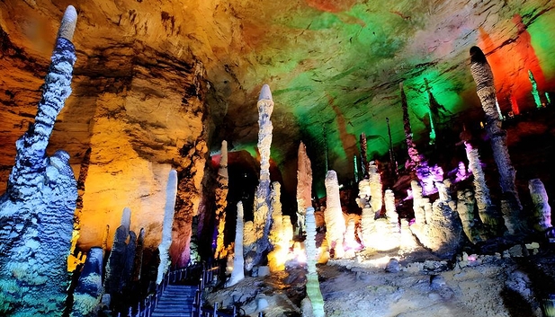 黃龍洞景區是世界自然遺產地,被譽為“中國溶洞之王”。這里有數千根石筍、石幔、石瀑等形態各異的鐘乳石,還有壯觀的石瀑布和地下湖泊等景觀,讓人流連忘返。