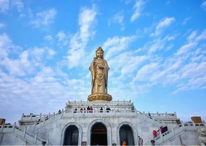 清晨,當(dāng)?shù)谝豢|陽光灑在海面上時,乘坐船只抵達(dá)普陀山。踏上這片蓮花般的島嶼,首先映入眼簾的便是巍峨的南海觀音像,她矗立在山頂,眺望著無盡的海洋,仿佛在訴說著千年的故事。沿著山路向上,可以參觀普陀寺,感受佛教文化的厚重與莊嚴(yán)。