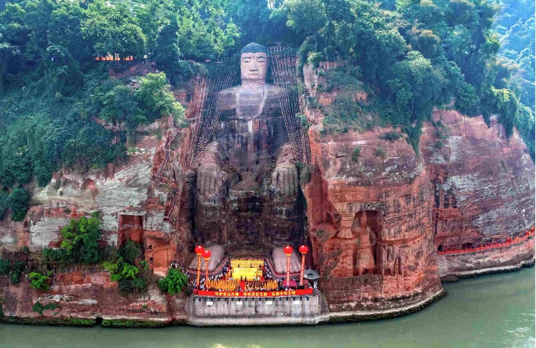 樂山大佛是世界上最大的石刻佛像,位于四川省樂山市。大佛依山鑿成,臨江危坐,歷經千年風雨,仍巍然屹立。站在大佛腳下,可以感受到一種莊嚴與寧靜,仿佛時光在這里凝固。