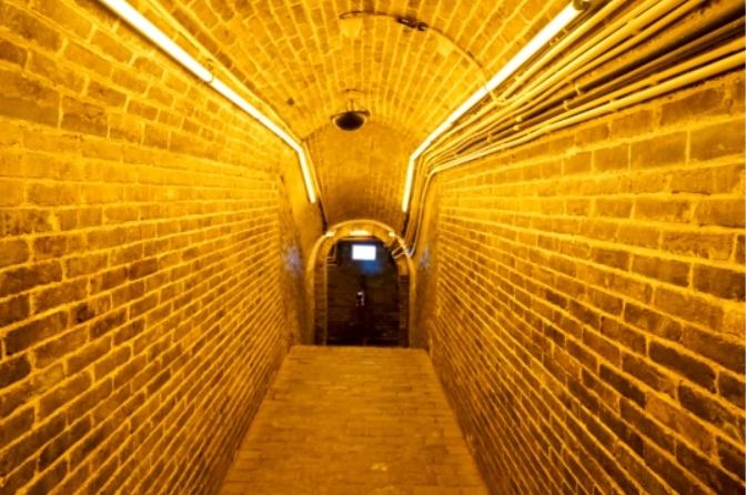 曹操運兵道縱橫交錯、布局奧妙、變化多樣、工程浩大,被譽為“地下長城”。地道內部設有貓耳洞、絆腿板、陷阱、障礙券等軍事設施。貓耳洞分布在單行道的兩側,當遇到敵兵追擊時,士兵可以躲在貓耳洞進行截擊,達到“一夫當關,萬夫莫開”的效果。障礙券則是采取突然降低券頂高度的辦法,讓不熟悉環境的陌生人在此受阻,以降低敵人戰斗力。