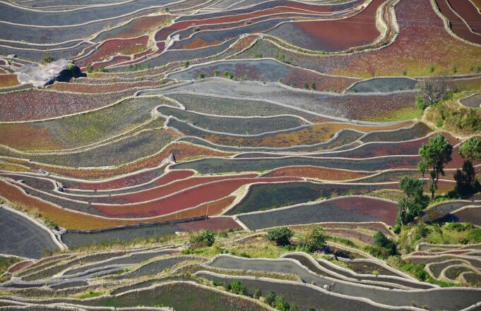 千百年來,這里的人民在紅土地上開墾耕作,每家每戶在自家地里隨意地種植著小麥、馬鈴薯、油菜等不同品種的農(nóng)作物。久而久之,這種隨意的耕作卻造就了今天色彩斑斕的東川紅土地。在每年不同的季節(jié)里,影友們都能在這里收獲到不同的美景。