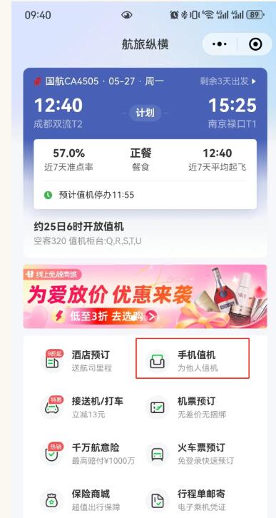 4、一般航空公司會提前一至兩天開放值機通道,若還想再早點“預定”自己心儀的位置,可在買票后,直接進入該航空公司官方微信小程序(或公眾號、網站),進行提前選座,并勾選“自動值機”。